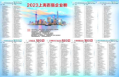 记者日前在上海市企业联合会、上海市企业家协会、上海市经济团体联合会等召开的2023上海百强企业新闻发布会上获悉,2023上海企业100强、上海制造业企业100强、上海服务业企业100强、上海民营企业100强等系列榜单正式发布。