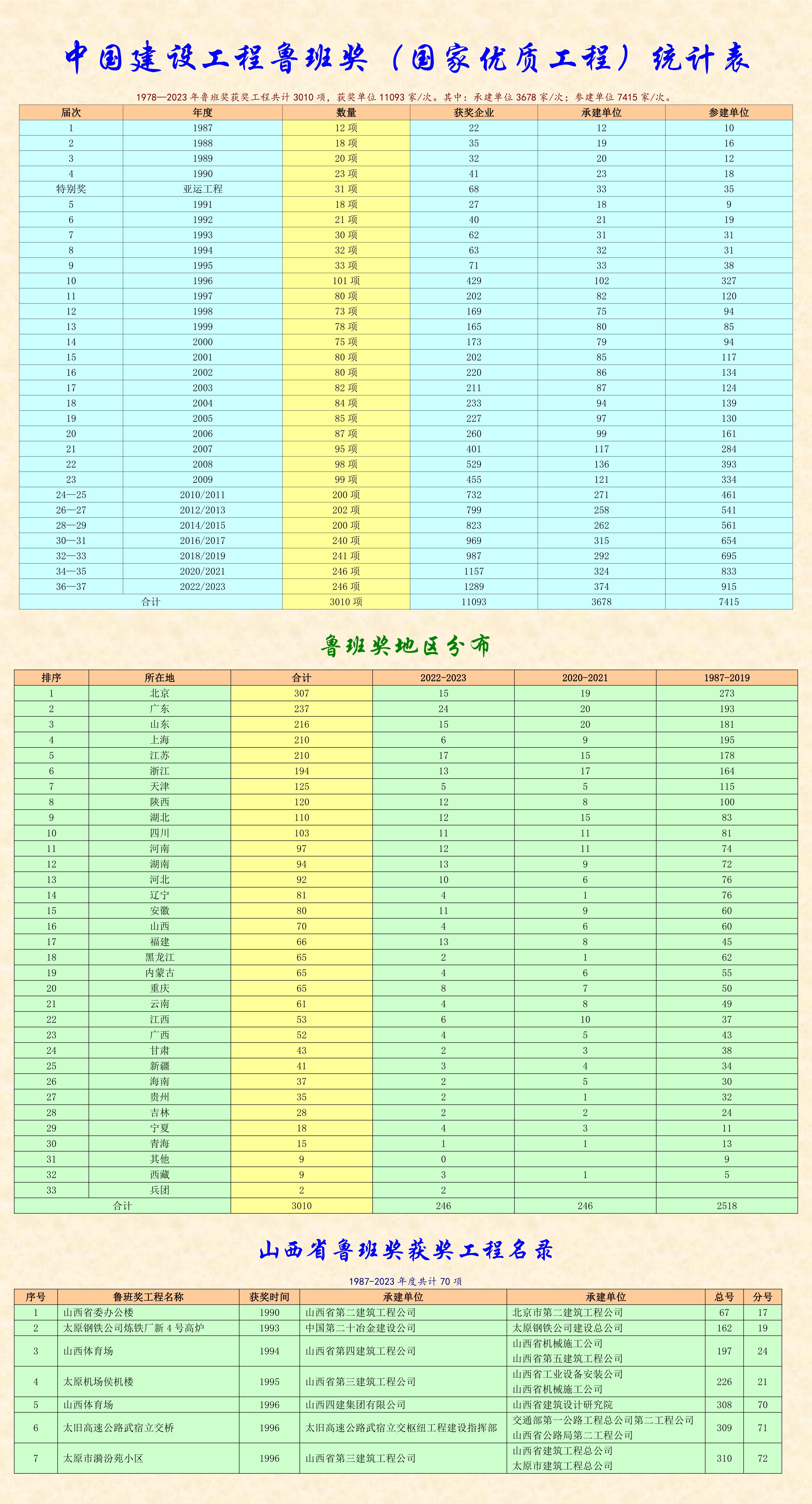 2022~2023年度第二批中国建设工程鲁班奖(国家优质工程)入选工程名单已确定,根据《中国建设工程鲁班奖(国家优质工程)评选办法》,对入选工程名单进行公示,自本公示发布之日起7日内,如公示的工程存在问题,请向我会反映,反映的内容应实事求是。以单位名义反映问题的,应加盖公章,以个人名义反映问题的,应实名并提供手机号码。