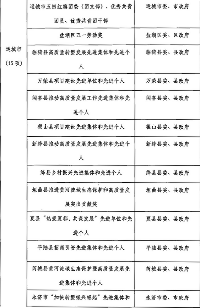 山西省2023年计划开展的评比达标表彰项目目录