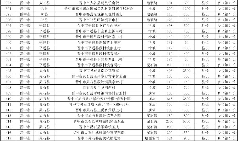 《方案》要求,强化治理搬迁,消除安全隐患。实施中央和省级资金安排9处地质灾害治理工程项目。其中,河津市、夏县、石楼县、临县、永和县、乡宁县、榆社县各1处,武乡县2处。《方案》提出,要把县级配套资金落实到位,加快项目施工进度,确保今年全部竣工;要推进中央和省级资金安排3397户农村地质灾害避险搬迁工作,落实市县配套资金,明确时间节点进度,确保年底全面开工,2024年竣工入住。