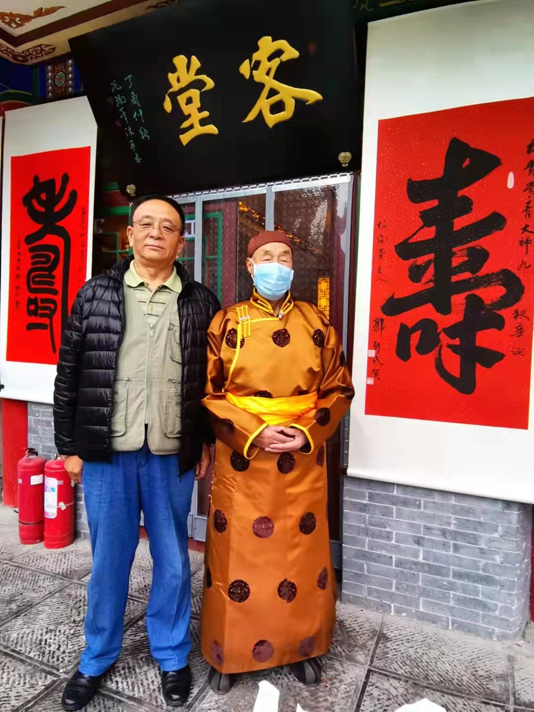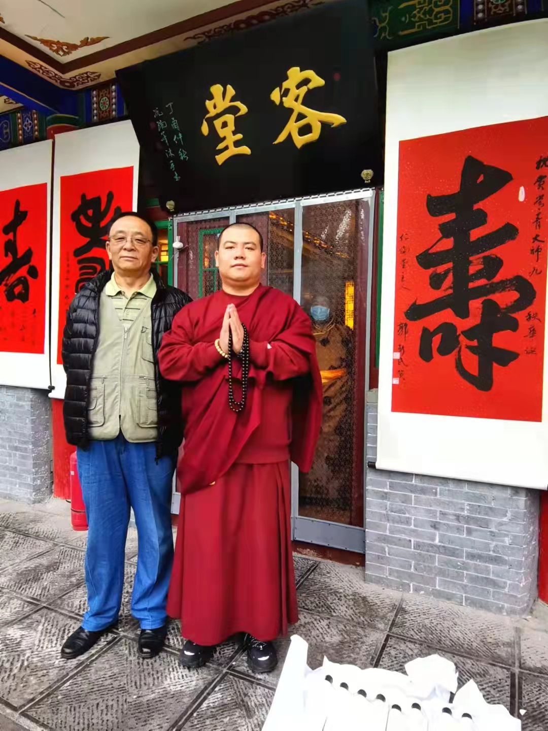 这是我的好兄弟于2021年9月23日专程赴五台山给常青法师祝贺九十大寿所