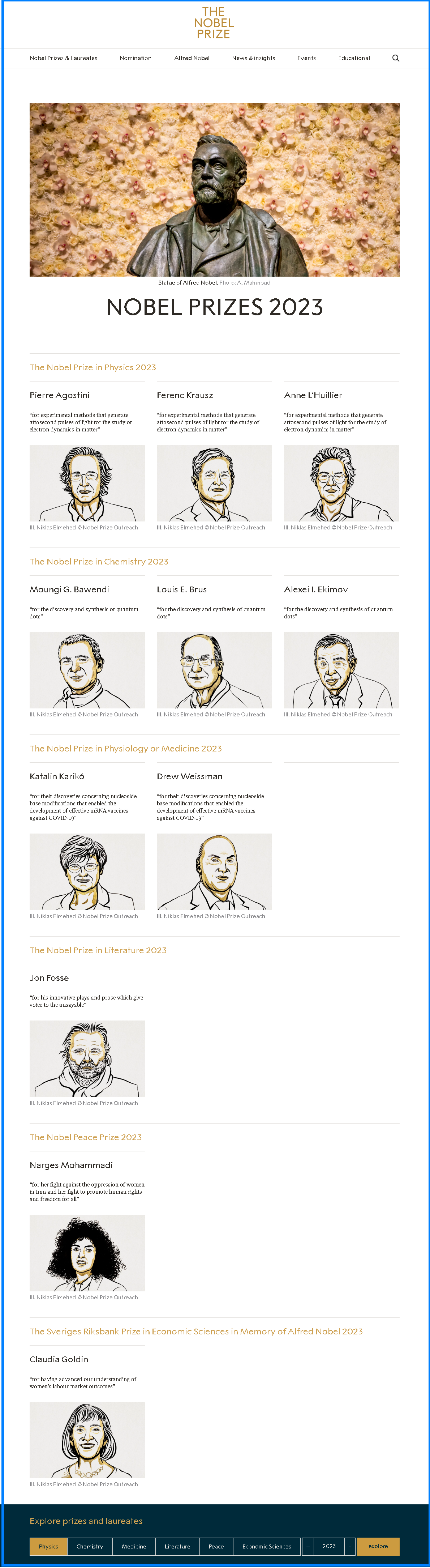 纳尔吉斯·穆罕默迪“表彰她反对伊朗压迫妇女的斗争以及她为促进所有人的人权和自由而进行的斗争”