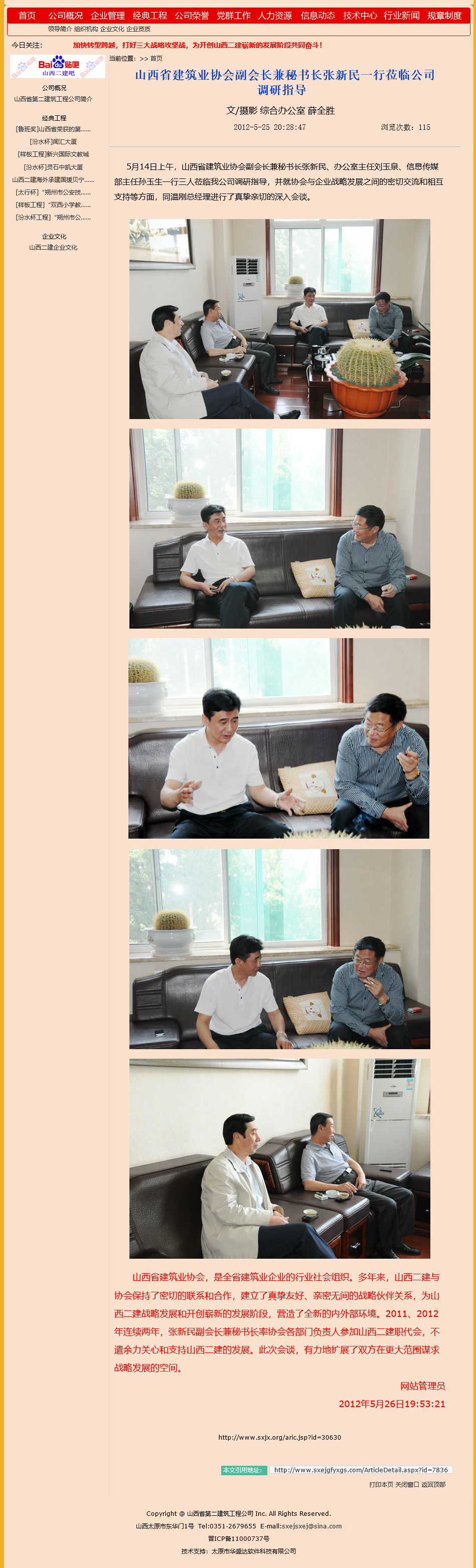 山西省建筑业协会副会长兼秘书长张新民一行 莅临公司调研指导