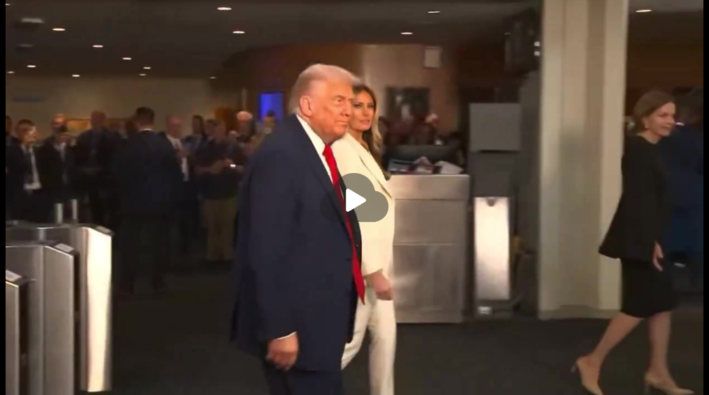 一段现场视频显示,特朗普和夫人刚走上自动扶梯,扶梯就停止工作。他们最后只能步行上楼。