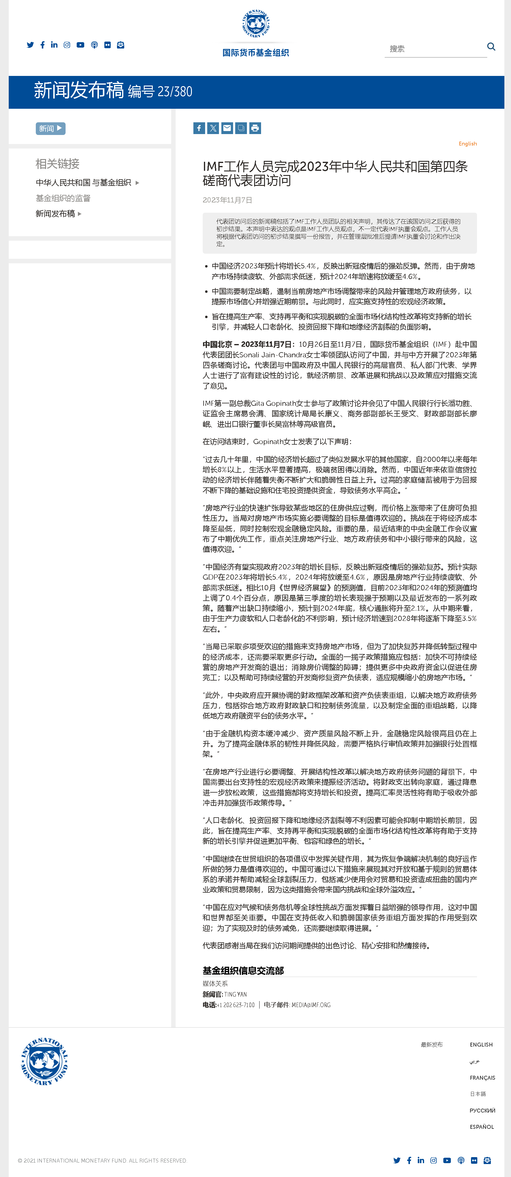“中国经济有望实现政府2023年的增长目标,反映出新冠疫情后的强劲复苏。”IMF表示。