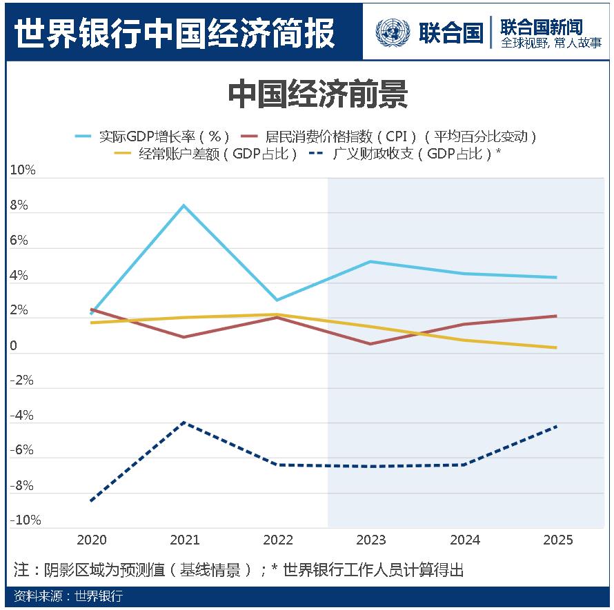 世界银行本周发布的最新一期《中国经济简报》Opens in new window指出,在服务需求增加、制造业投资保持韧性和公共基础设施刺激措施的推动下,2023年中国经济活动有所回升。然而,经济的表现仍有波动,通货紧缩压力持续存在,消费者信心依然不足。报告预计2023年中国经济增速为5.2%,2024年将放缓至4.5%。