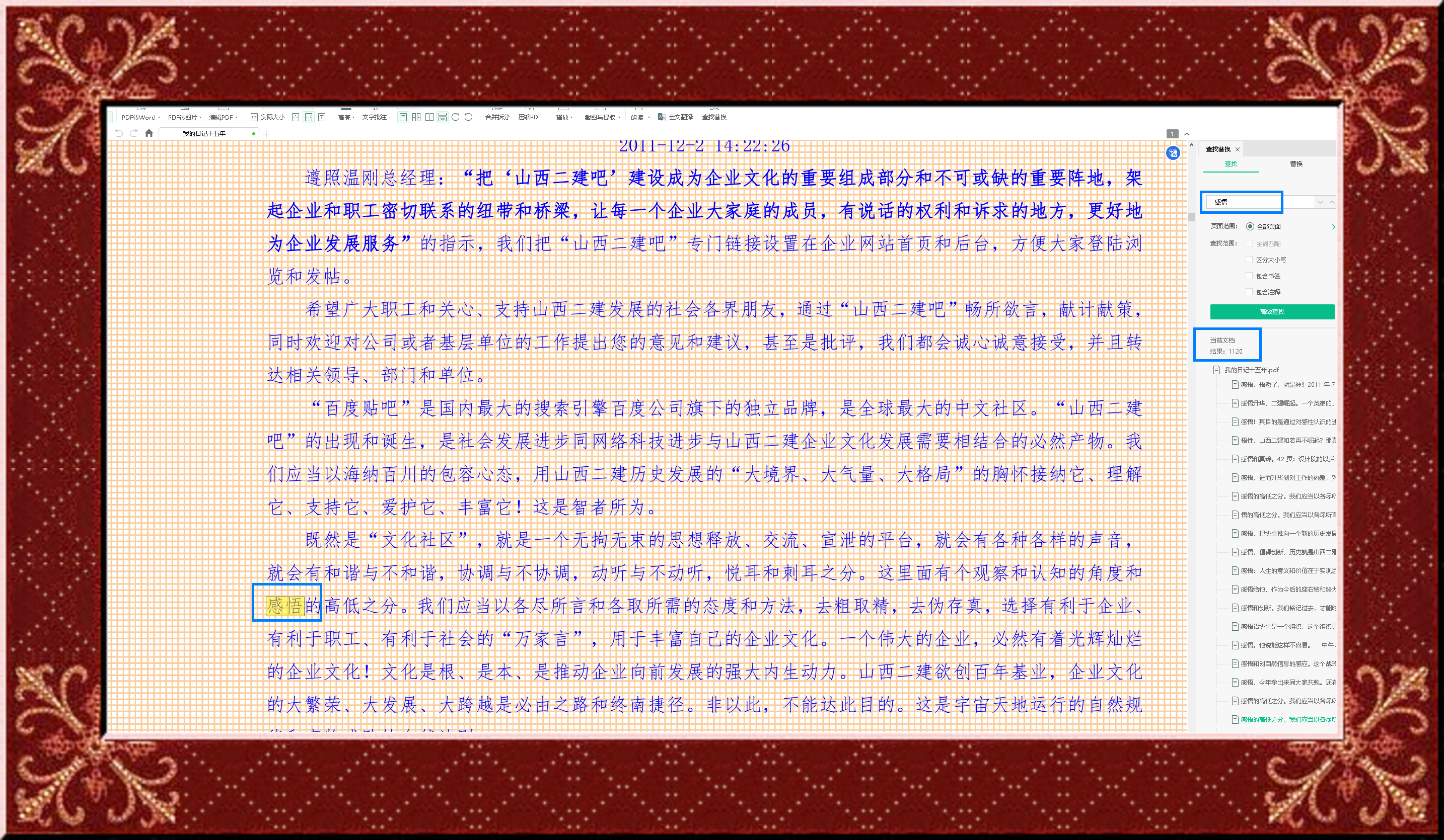 十五年日记统计,“感悟”1120处。这是山西二建从2011年开始走出困境的思想解放,获得战略突破奠定了感悟的思想基础!