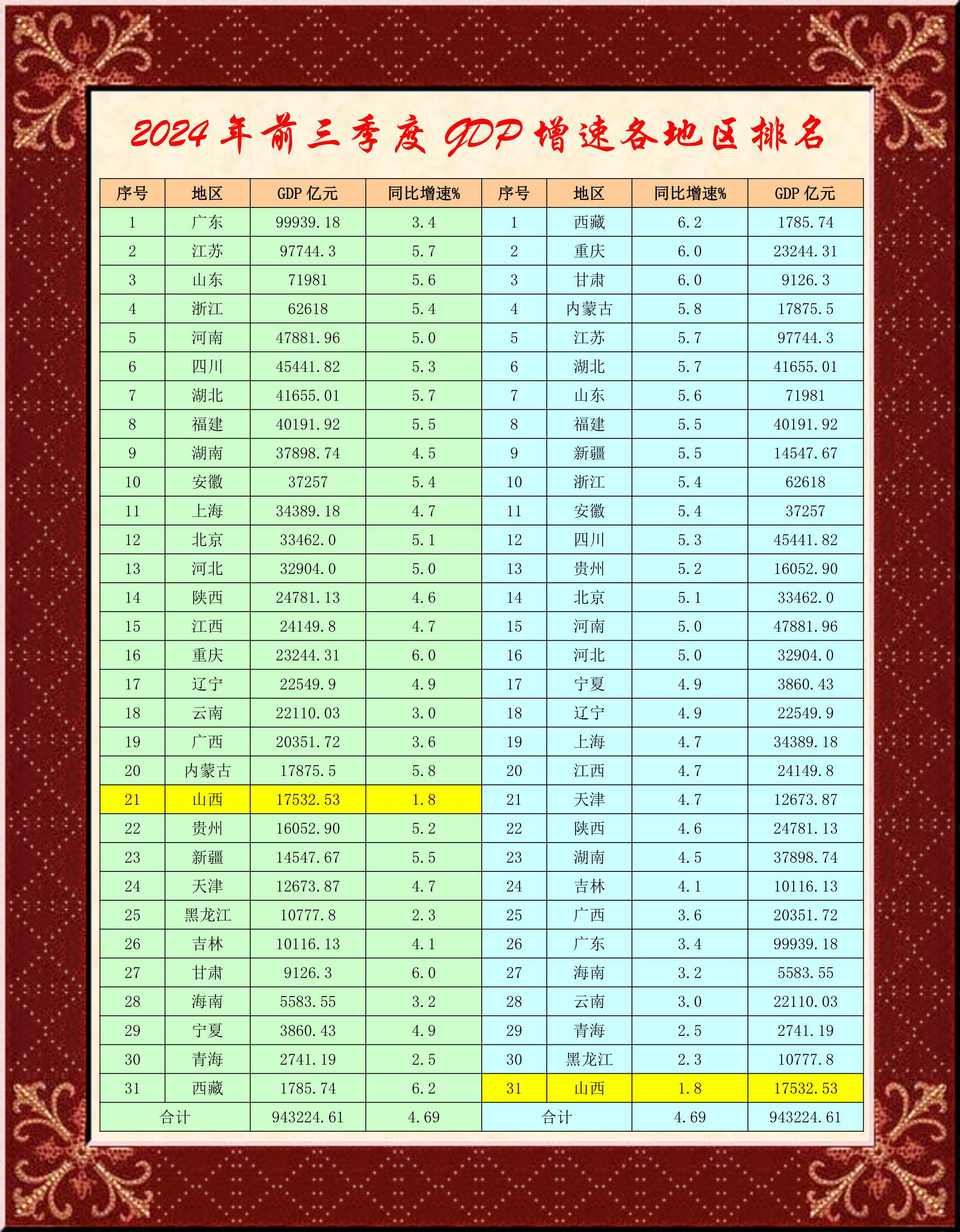2025.感悟31省份前三季度GDP——粤苏鲁浙扛大旗豫川鄂闽超四万亿