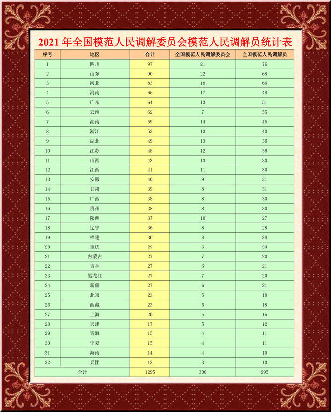 司法部关于表彰全国模范人民调解委员会模范人民调解员的决定