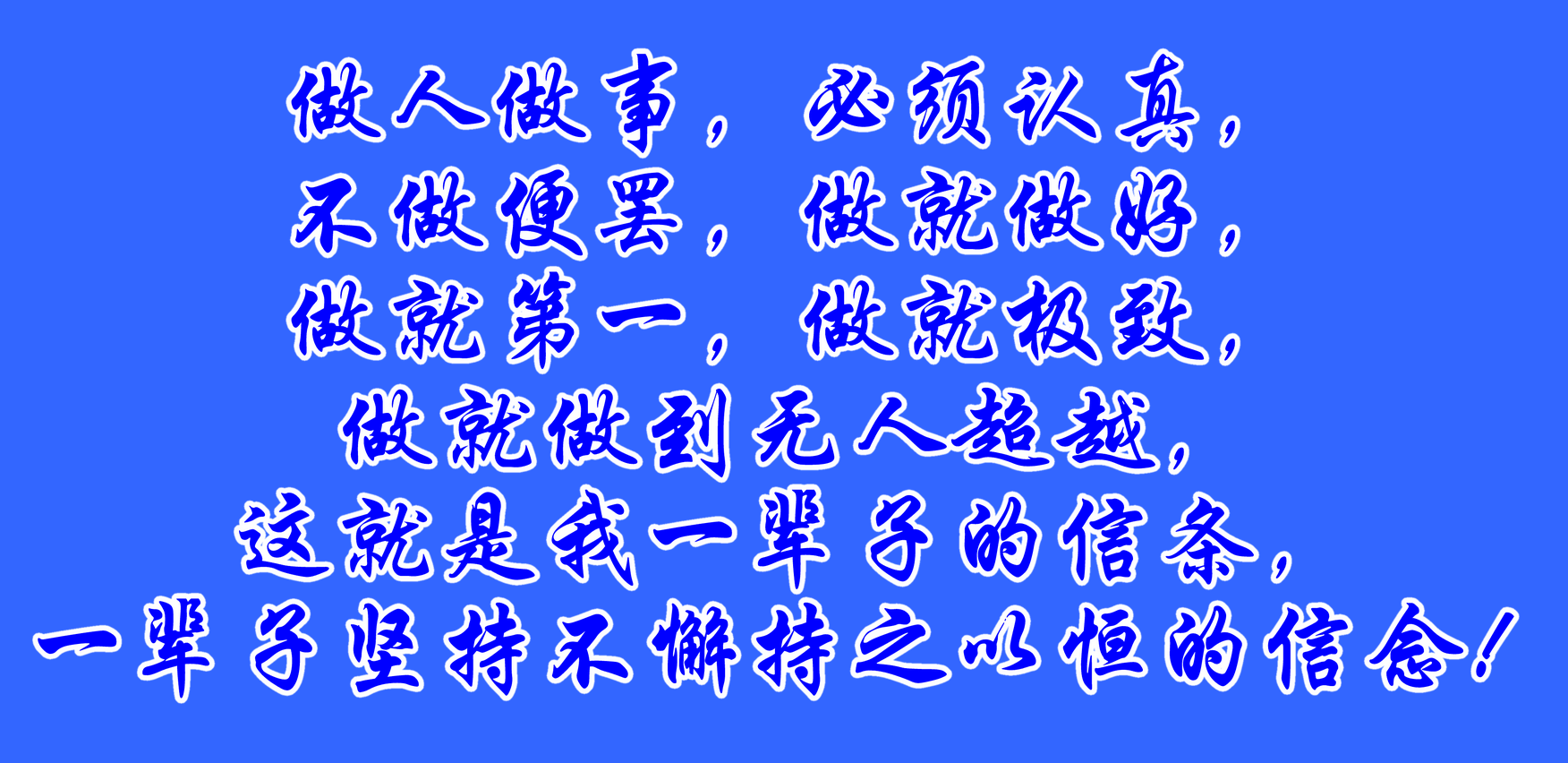 做人做事,必须认真,不做便罢,做就做好,做就第一,做就极致,做就做到无人超越,这就是我一辈子的信条,一辈子坚持不懈持之以恒的信念!可以说,七十年始终如一,不曾懈怠,年复一年,日复一日,修成正果,此生甚慰!我做到了人生无憾上天护佑的境界,做到了为人一世天地良心的高端,做到了道德和合一体的自然,感慨、欣慰、满足!