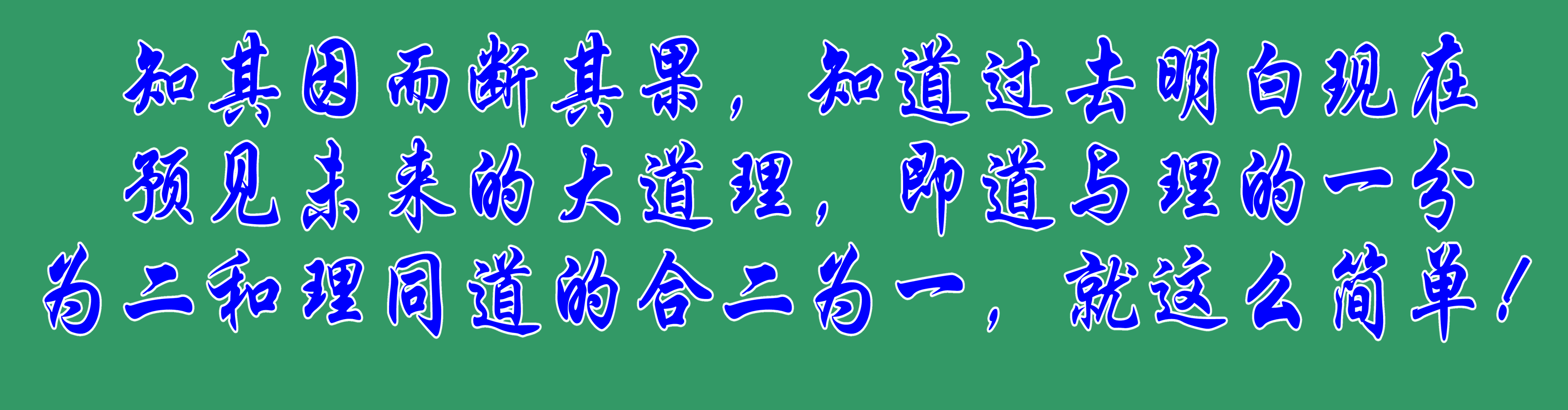 经过一个轮回的经历,经过反复思考实践,这个问题有了解开的答案和方法,就是知其因而断其果,知道过去明白现在预见未来的大道理,即道与理的一分为二和理同道的合二为一,就这么简单!