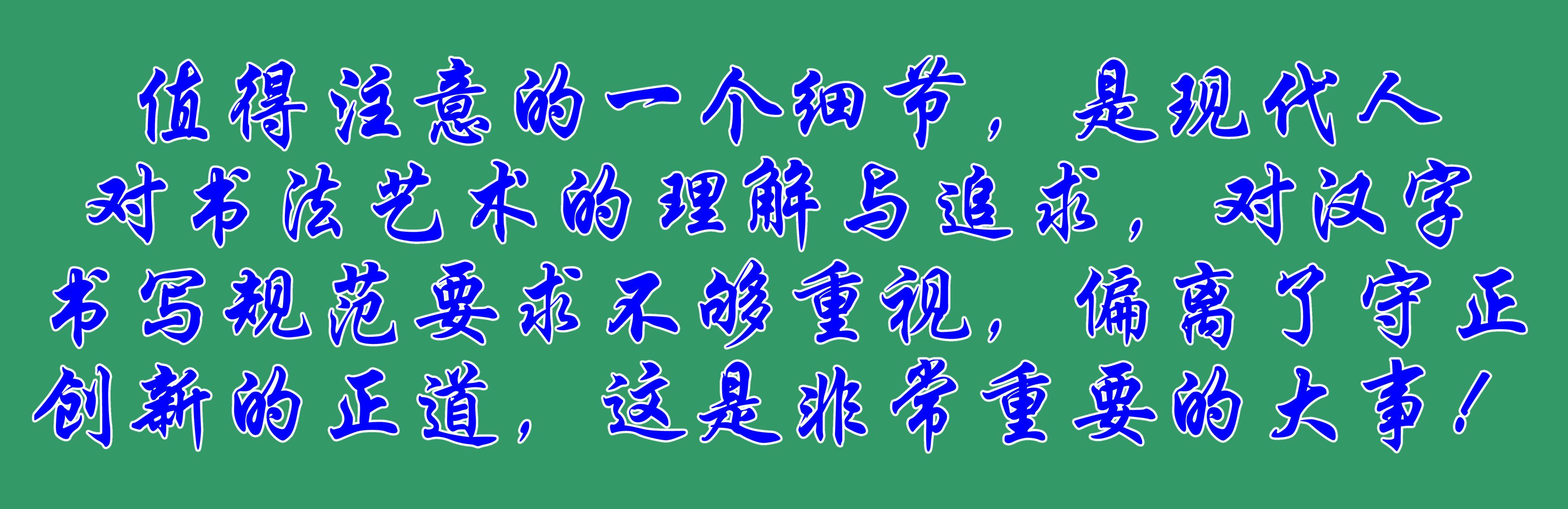 值得注意的一个细节,是现代人对书法艺术的理解与追求,对汉字书写规范要求不够重视,偏离了守正创新的正道,这是非常重要的大事!所谓创新,必须以正楷为根为魂,而不是歪歪扭扭的作态,还美其名曰这个体,那个体,实际是经不起历史考验的随便体而已!