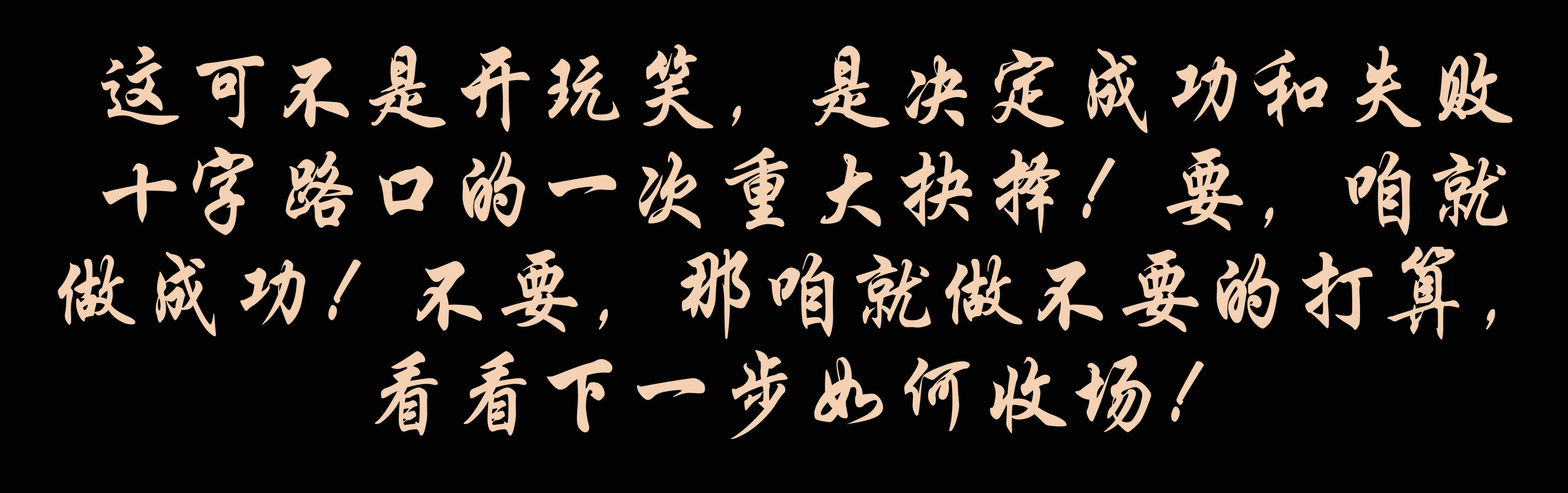 这可不是开玩笑,是决定成功和失败十字路口的一次重大抉择!要,咱就做成功!不要,那咱就做不要的打算,看看下一步如何收场!