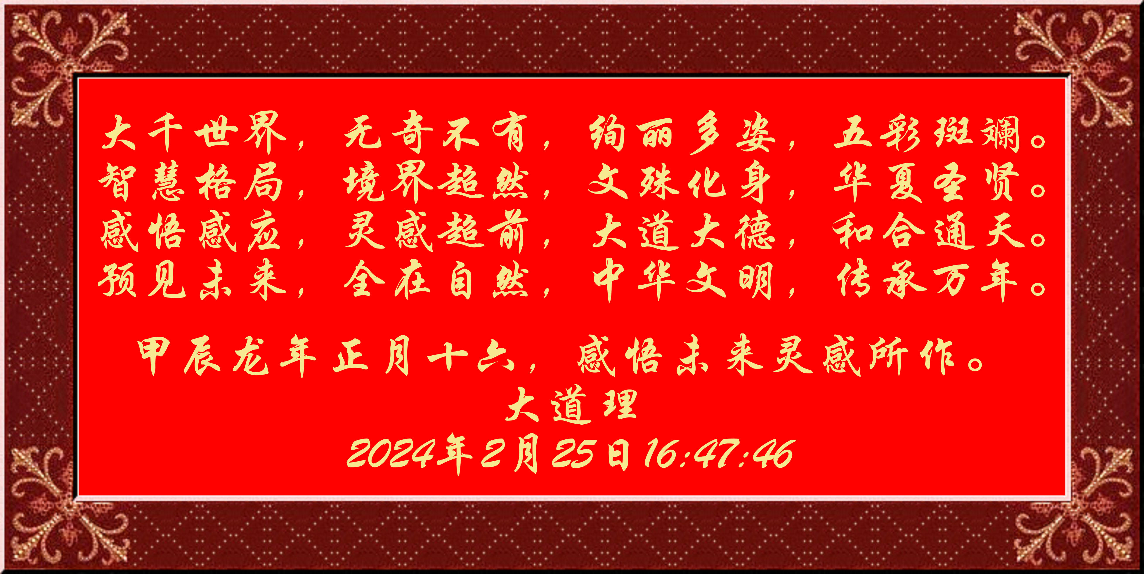 感悟感应,灵感超前,大道大德,和合通天。预见未来,全在自然,中华文明,传承万年。