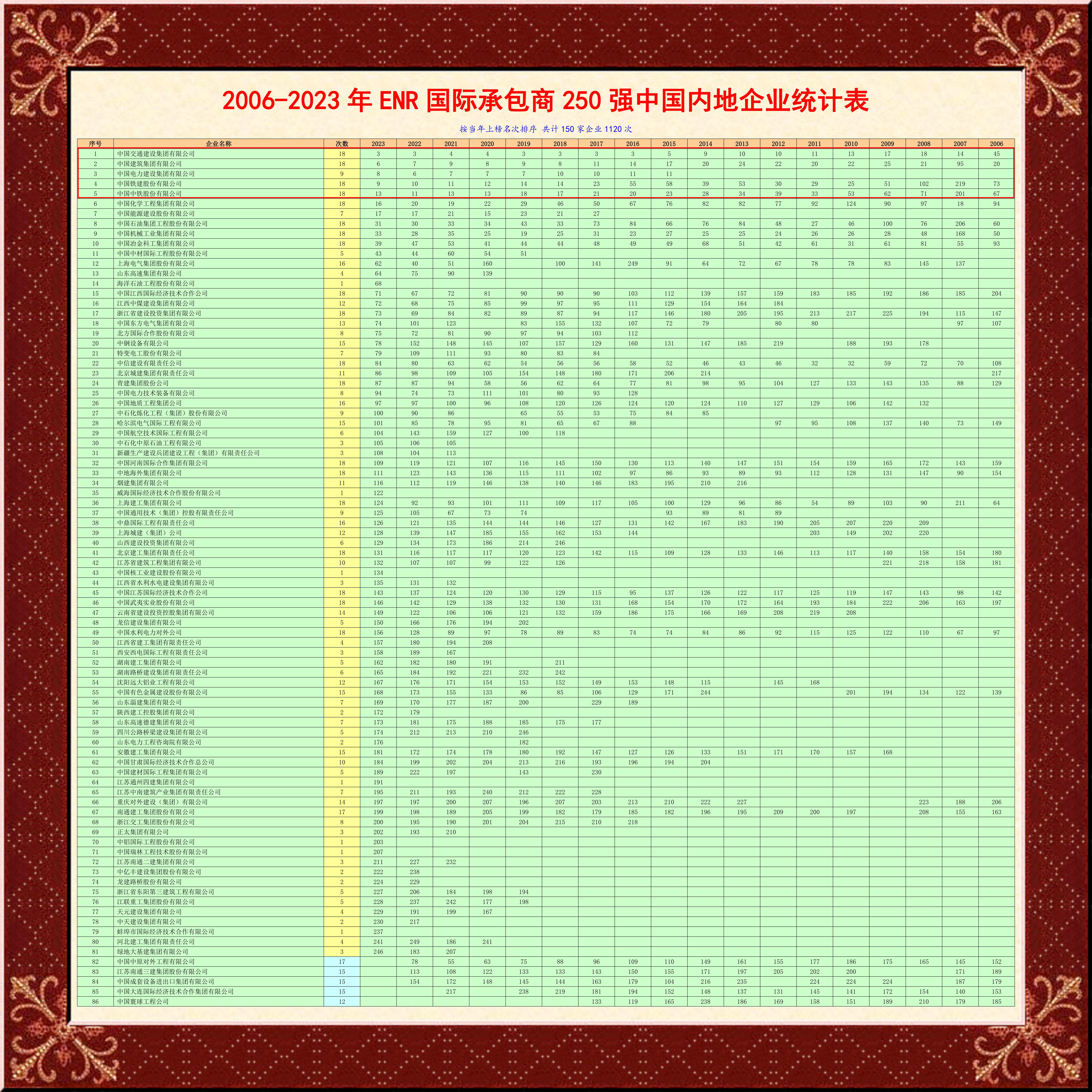 今年我们能有多少家建筑公司上榜呢?又有哪家能够进入前10强?让我们拭目以待!