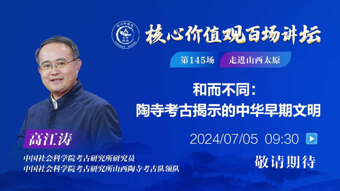 和而不同:陶寺考古揭示的中华早期文明,核心价值观百场讲坛第145场将于5日走进太原。